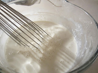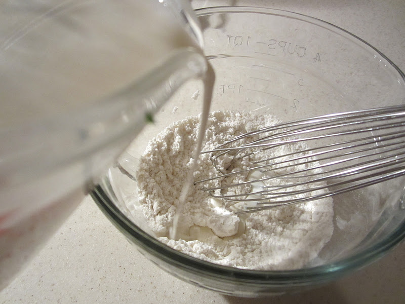 Meanwhile, place flour in a medium size bowl and gradually whisk half and half into flour. Whisk until smooth.
