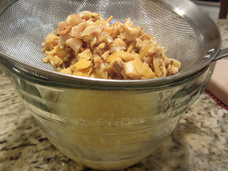 - 2 – 6 1/2 oz cans chopped clams, drained, reserving clam juice
